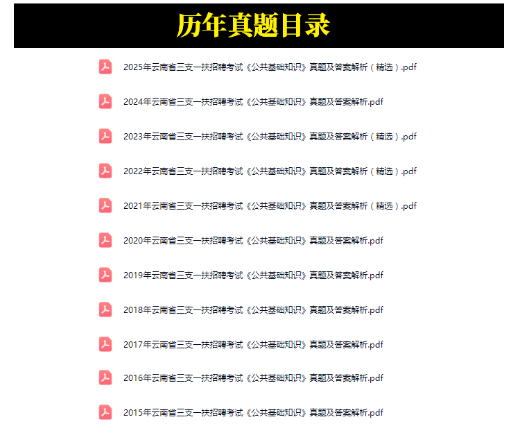 2015年-2025年云南省三支一扶招募考试笔试历年真题11套