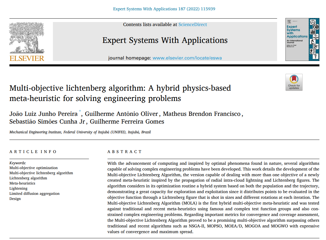 多目标利希滕贝格算法(Multi-objective lichtenberg algorithm,MOLA)由Joao Luiz Junho Pereira等人于2022年提出。