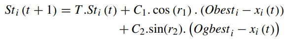 黄金搜索优化算法与粒子群优化算法极其相似,类似于改进型粒子群优化算法。其更新公式如下: