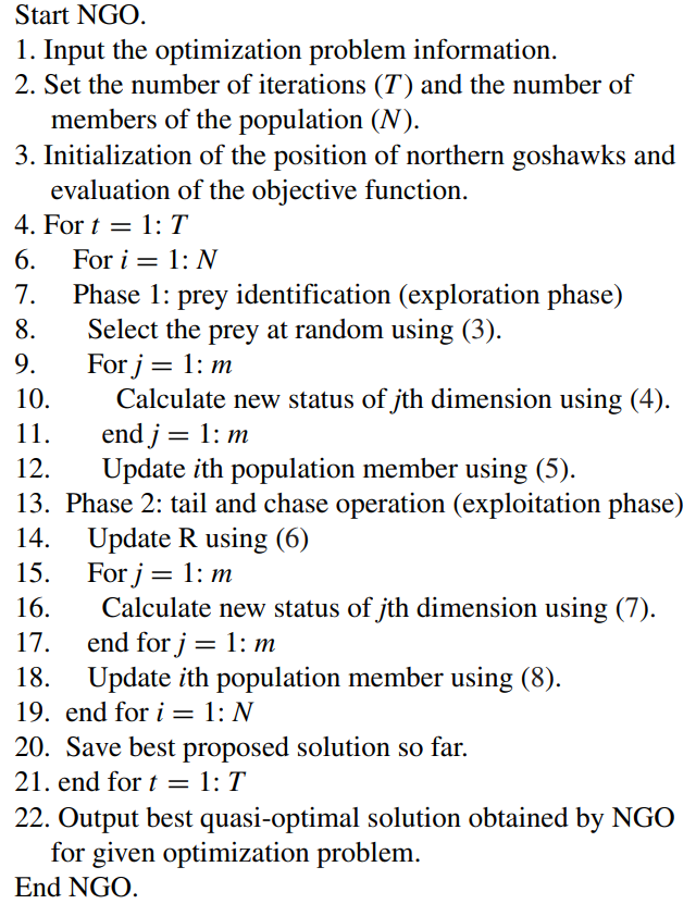 北方苍鹰优化算法(Northern Goshawk Optimization,NGO)由MOHAMMAD DEHGHANI等人于2022年提出,该算法,该算法模拟了北方苍鹰捕猎过程(猎物识别和攻击、追逐及逃生)。北方苍鹰优化算法NGO