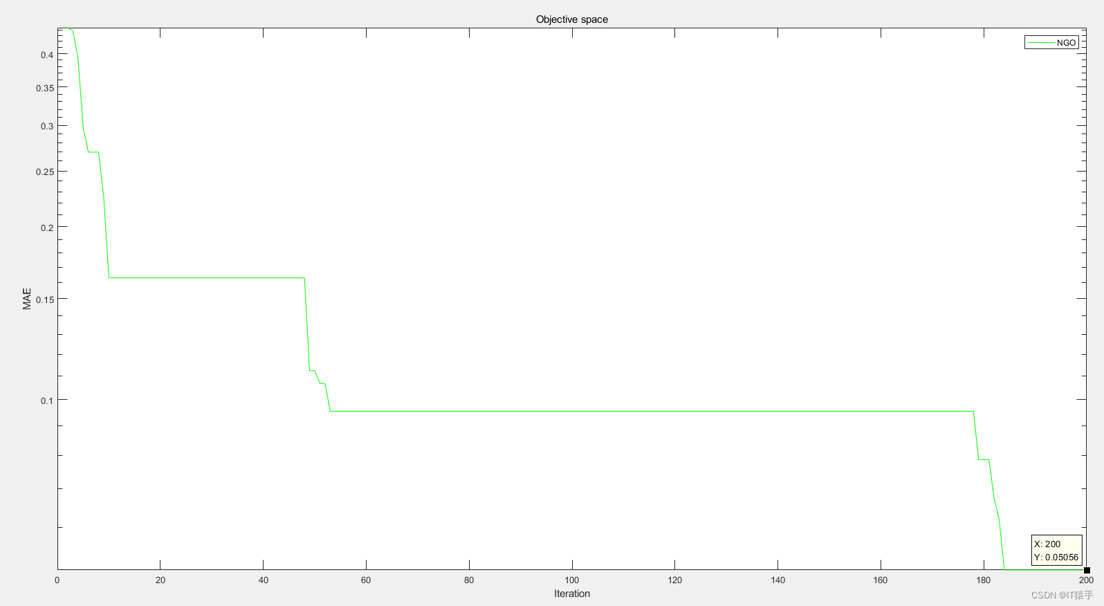 %% 画出北方苍鹰优化算分NGO优化概率神经网络PNN的MAE随迭代次数的图