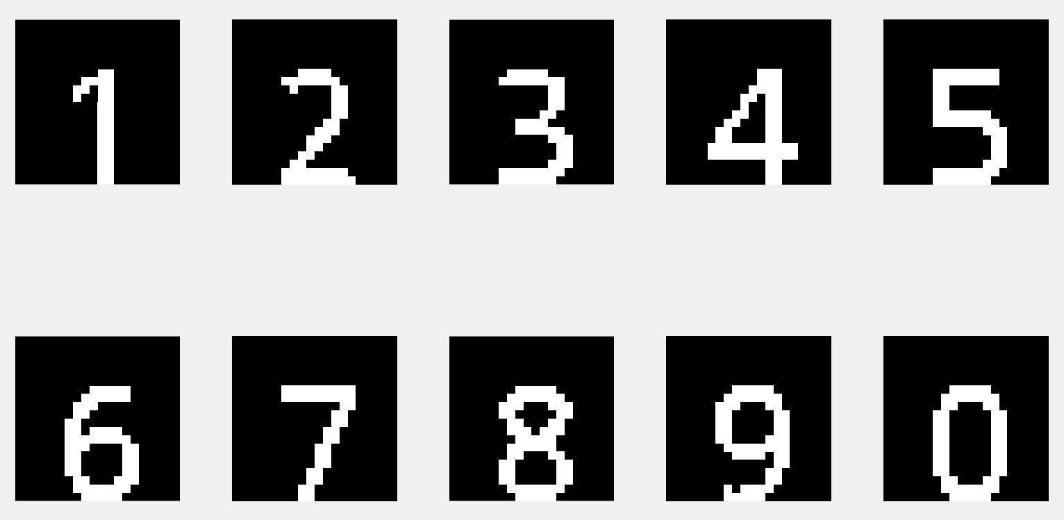 训练集共有十张光学字符图片构成分别是1,2,3,4,5,6,7,8,9,0。其对应类别可表示为: