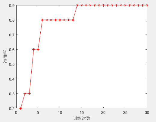 最大训练次数为30次,训练集上准确率随迭代次数的变化图如下: