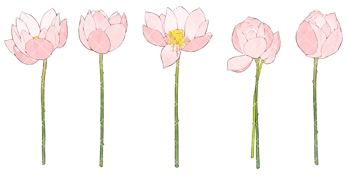 装饰型莲花荷花笔刷,内含5款不同姿态的独枝莲花(此笔刷不含荷叶!),适用于空镜、服装类点缀、道具类装饰使用。