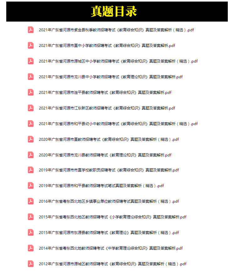 2012年-2021年河源市中小学教师招聘考试笔试真题16套