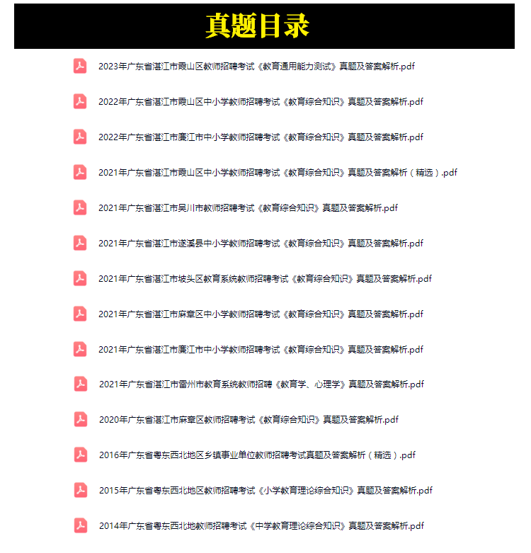 2014年-2023年湛江市中小学教师招聘考试笔试真题14套