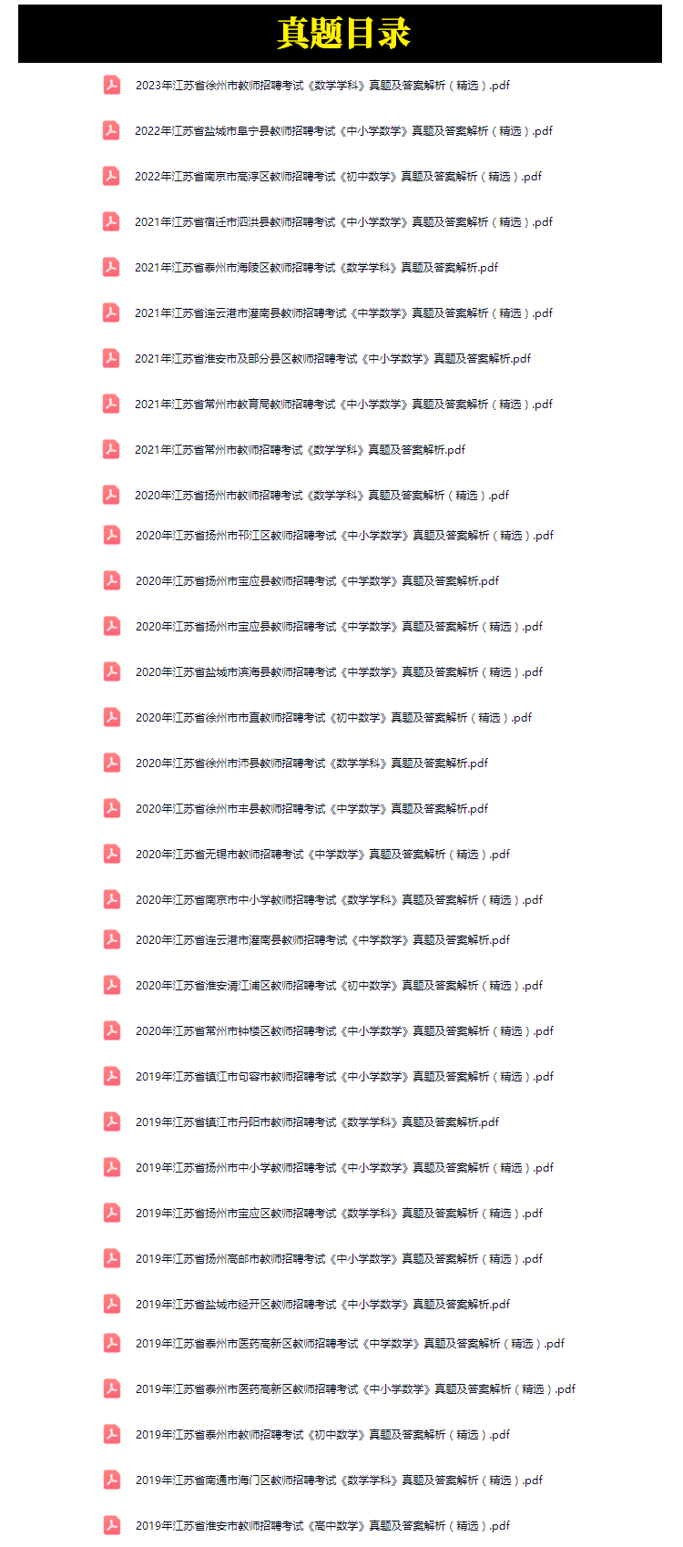 2019年-2023年江苏省教师招聘考试中学数学学科专业知识笔试真题35套