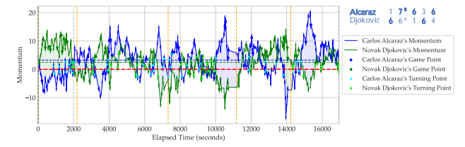 队伍2409404通过线性表达式,量化势头,并画出比赛过程中势头的变化曲线。