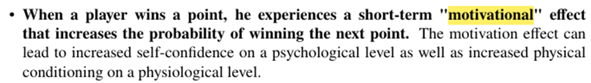 还有队伍2425454提出当队员得分,会获得“激励效果”,从而增加得分概率。识别并合理化任何(以及所有)建模假设,这是建模过程中必要的要求。
