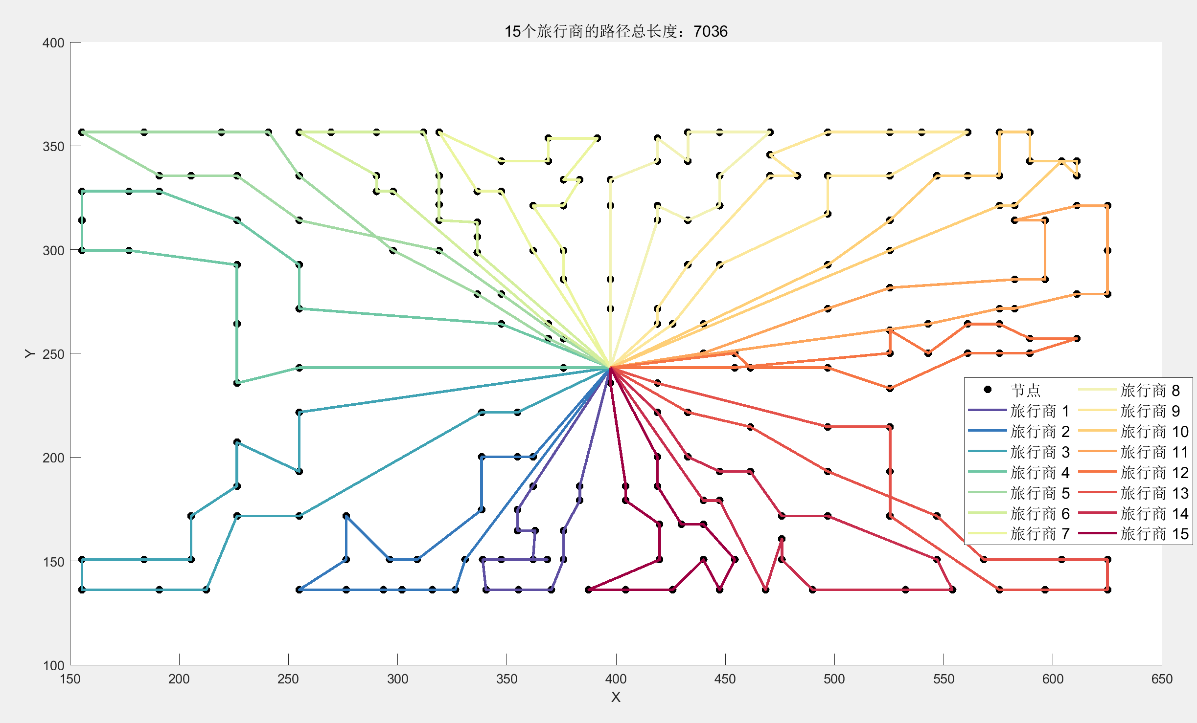 算法求解得到的总路径长度:7036.000000