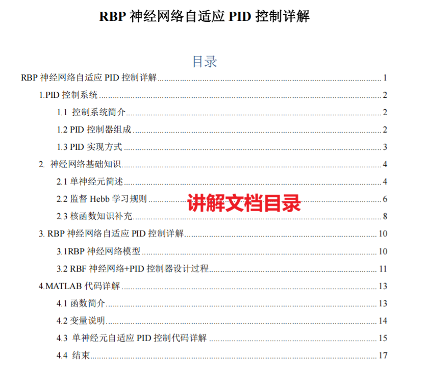 3、文档内容:神经网络理论知识、RBF_PID控制详解及设计过程,代码说明讲解