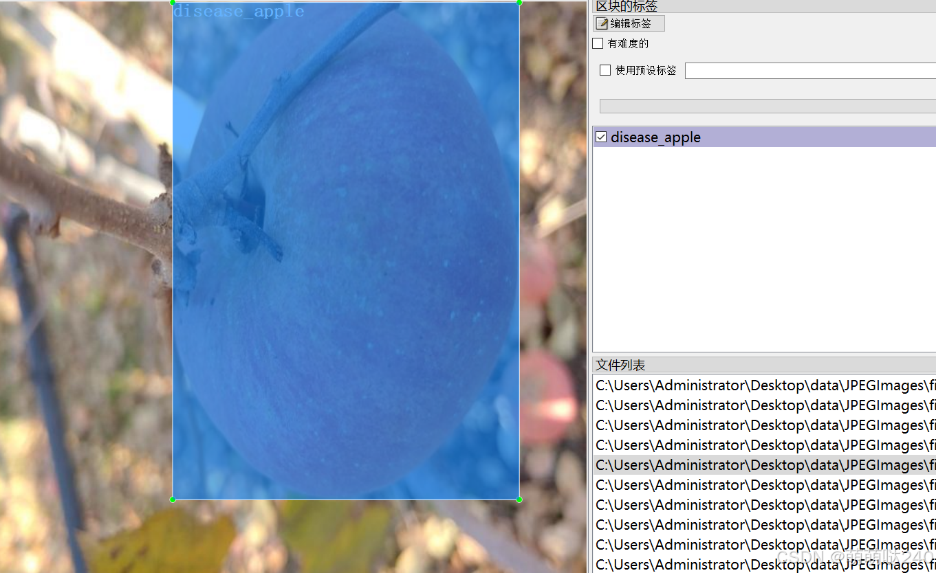 标注类别名称:["disease_apple","good_apple","rotten_apple","soso_apple"]