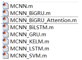 - 组合了几个常用的和新颖的网络:MCNN-BiGRU、MCNN-BiGRU-Attention、MCNN-BiLSTM、MCNN-GRU、MCNN -KELM、MCNN-LSTM、MCNN-SVM。