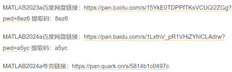 MATLAB2024a百度网盘链接:https://pan.baidu.com/s/1LxfnV_pR1VHiZYhlCLAdrw?pwd=a5yc 提取码:a5yc