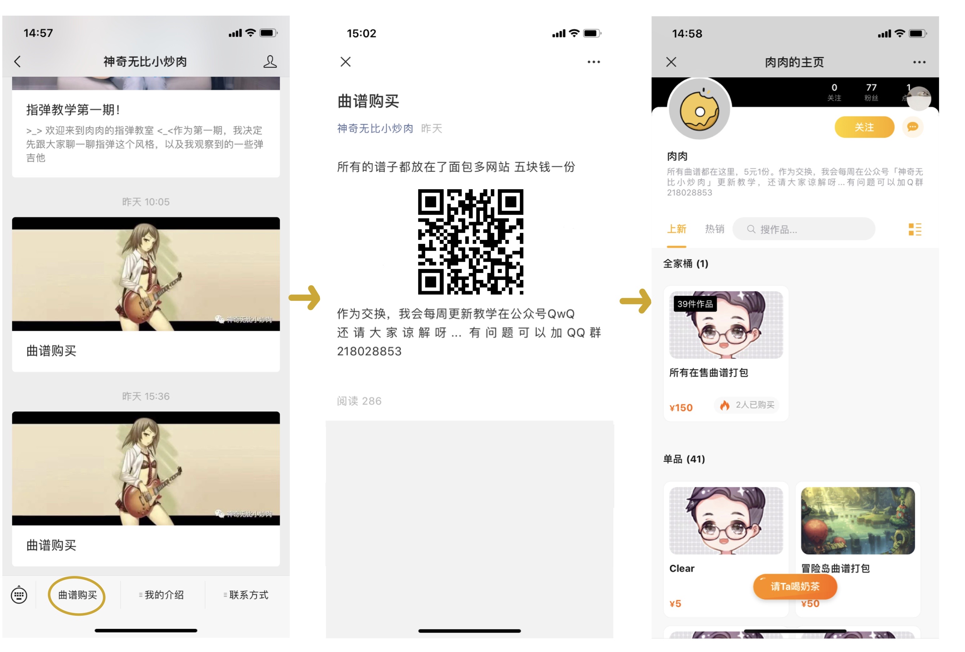 比如你的曲谱是免费分享的,但你同时有付费的教学课。那么每一次分享曲谱的时候,都可以挂上个人店铺的链接,这样抱走曲谱的粉丝们也一定会看到你的教学课,有兴趣的粉丝就可以直接购买啦~