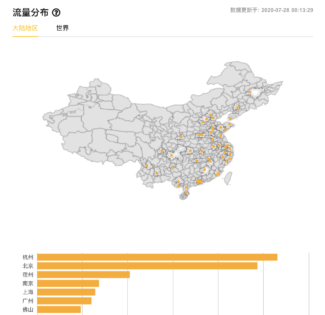 从这个图可以看到浏览者都分布在哪些城市,虽然没有很有用,但很酷呀~