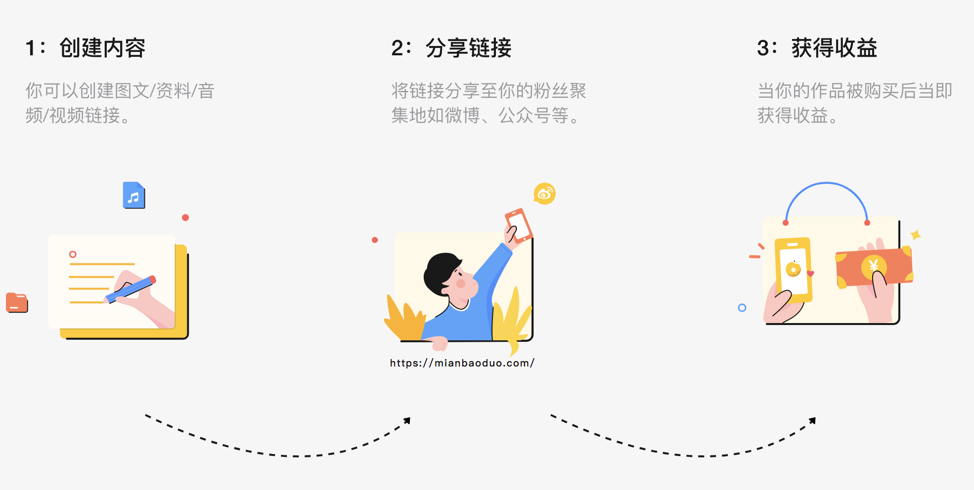 面包多认为:每一份能满足他人需求的努力都值得被付费。如果你也认同这一观点,不妨试试面包多。面包多欢迎每一位原创作者!你可以通过 面包多网站 或 微博私信@面包多平台 联系我们。