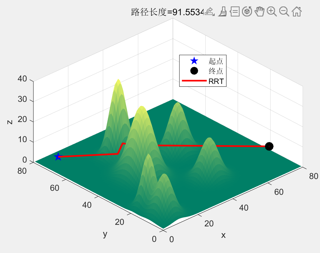 RRT(Rapidly-exploring Random Tree)算法是一种基于采样的路径规划方法,它通过递增地构建一棵树来探索配置空间。算法从一个初始点(通常是起点)开始,通过随机采样的方式逐步扩展树结构,直到达到或接近目标点。