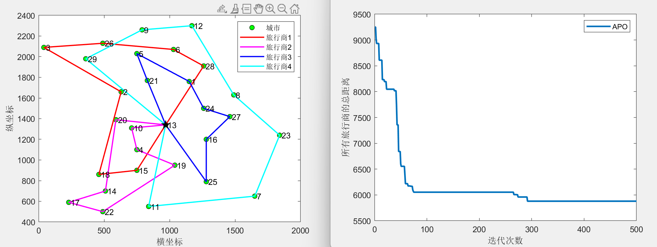 SDMTSP:人工原生动物优化器(Artificial Protozoa Optimizer ,APO)求解单仓库多旅行商问题,可以更改数据集和起点(MATLAB代码)-CSDN博客