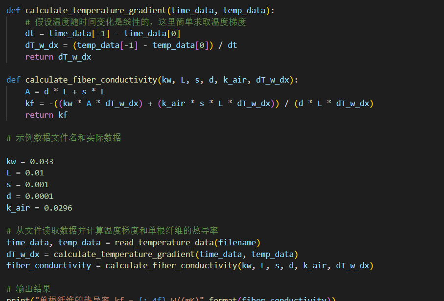 4. 纤维部分的热导率是未知量,设单根纤维的热导率为k_f。