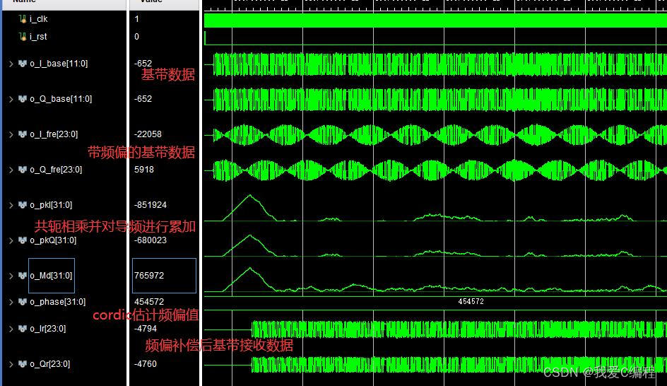 将接收端接收到的导频数据做延迟和共轭相乘,然后根据其实部和虚部做cordic算法得到对应的频偏值。