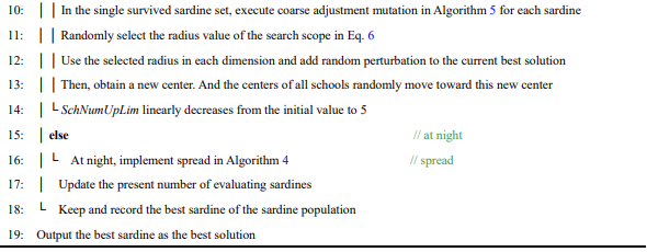 [1]Zhang, H., Tang, M., Liu, Y. et al. Sardine Optimization Algorithm with Agile Locality and Globality Strategies for Real Optimization Problems. Arab J Sci Eng 48, 9787–9825 (2023). https://doi.org/10.1007/s13369-022-07350-y
