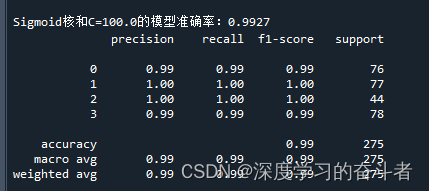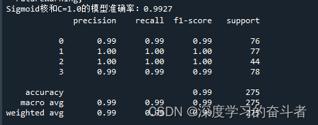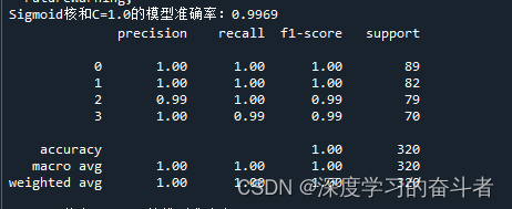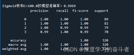 0HP 1HP 2HP 3HP softmax分类器 100% 99.37% 99.27% 99.68% SVM(C=1)分类器 100% 99.69% 99.27% 100% SVM(C=100)分类器 99.69% 99.69% 99.27% 100% 实验结果为,softmax分类器在四种负载下的平均准确率为99.58%,svm分类器在四种负载下的平均准确率为99.74%(C=1),99.66(C=100)。