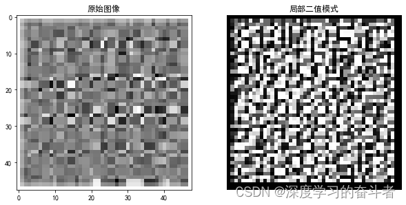 随意选取一张灰度图像的原始图像和经局部二值模式处理后的照片展示