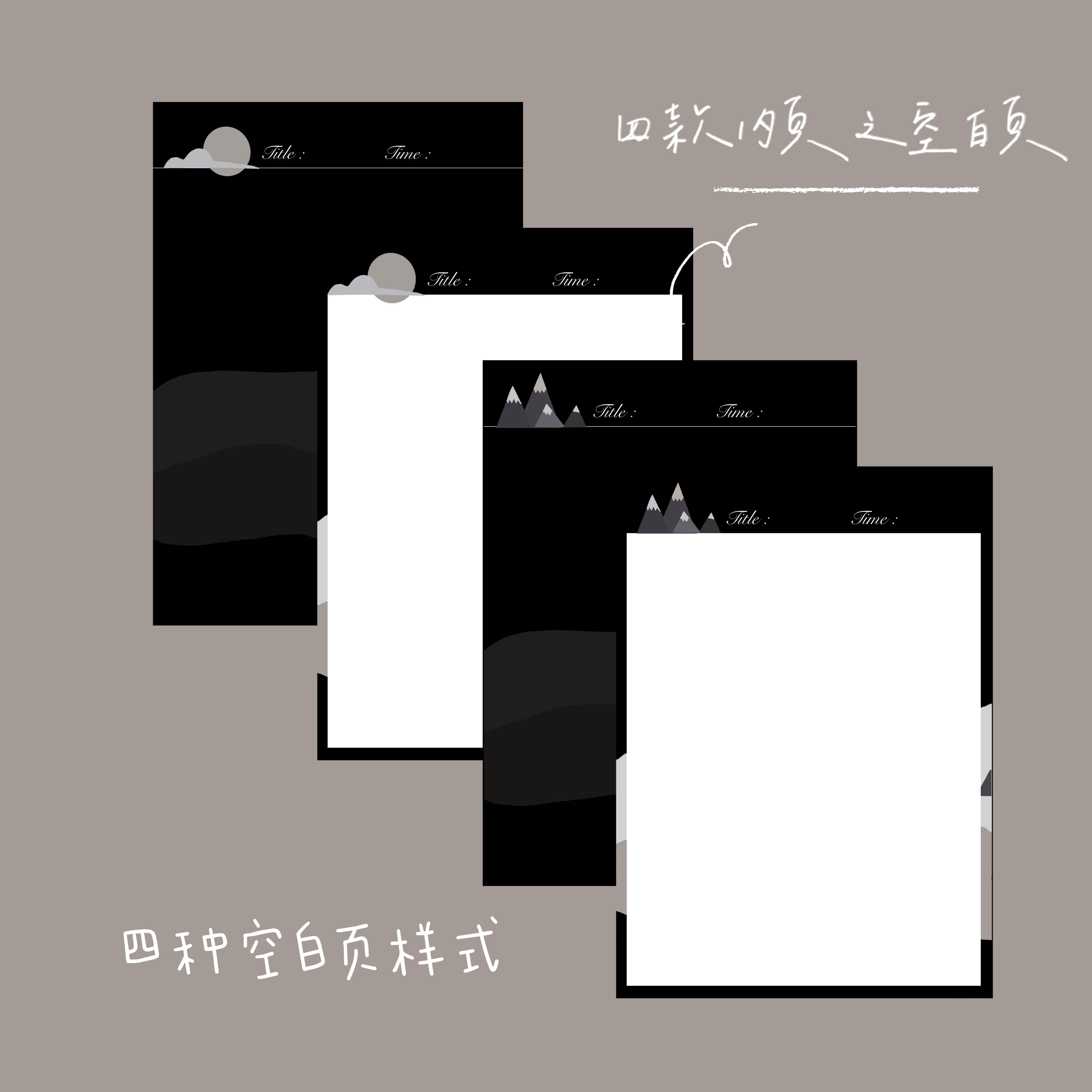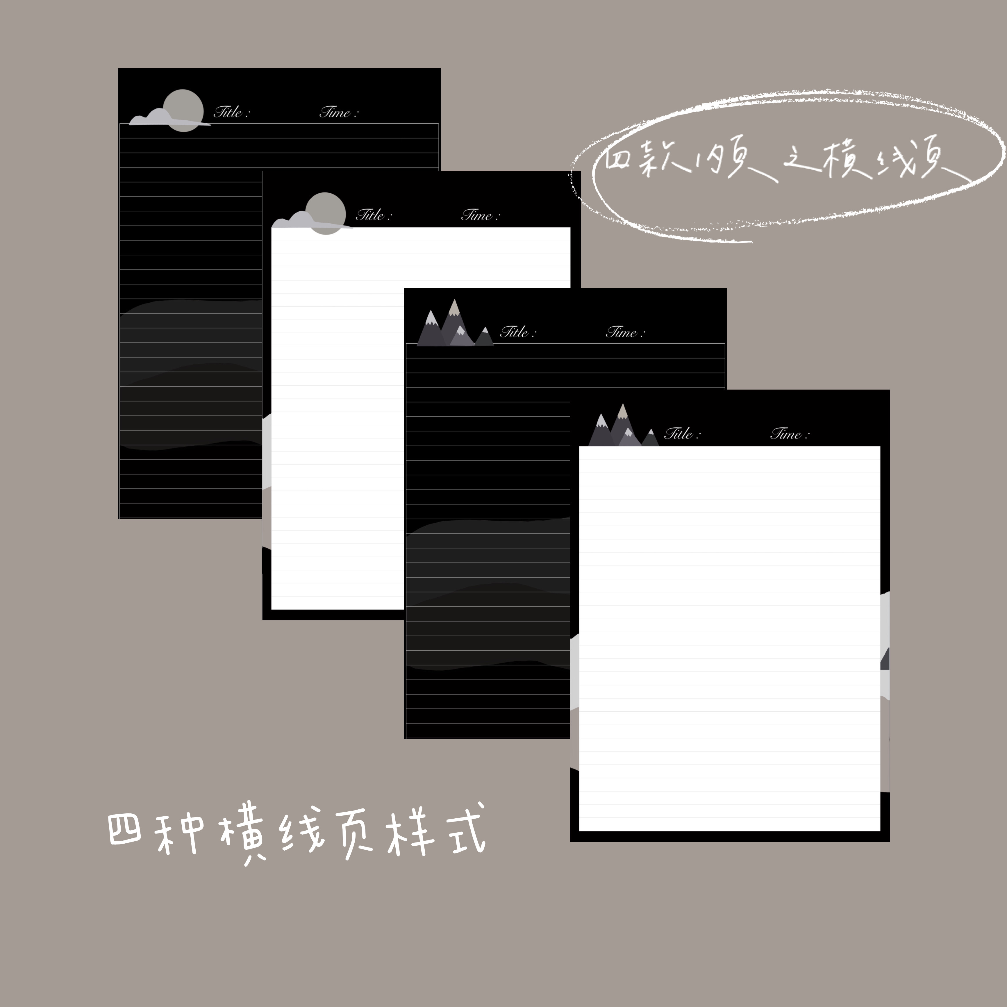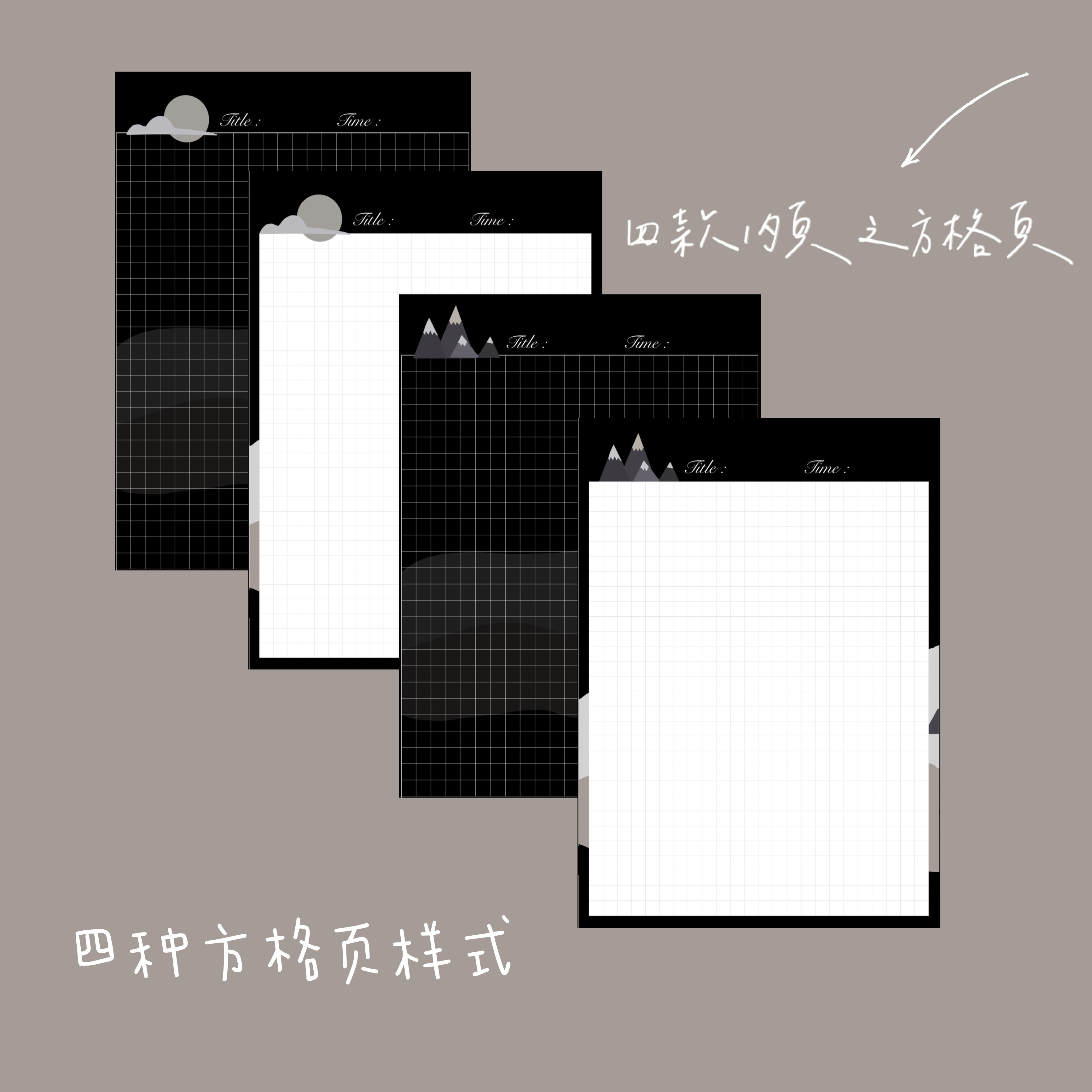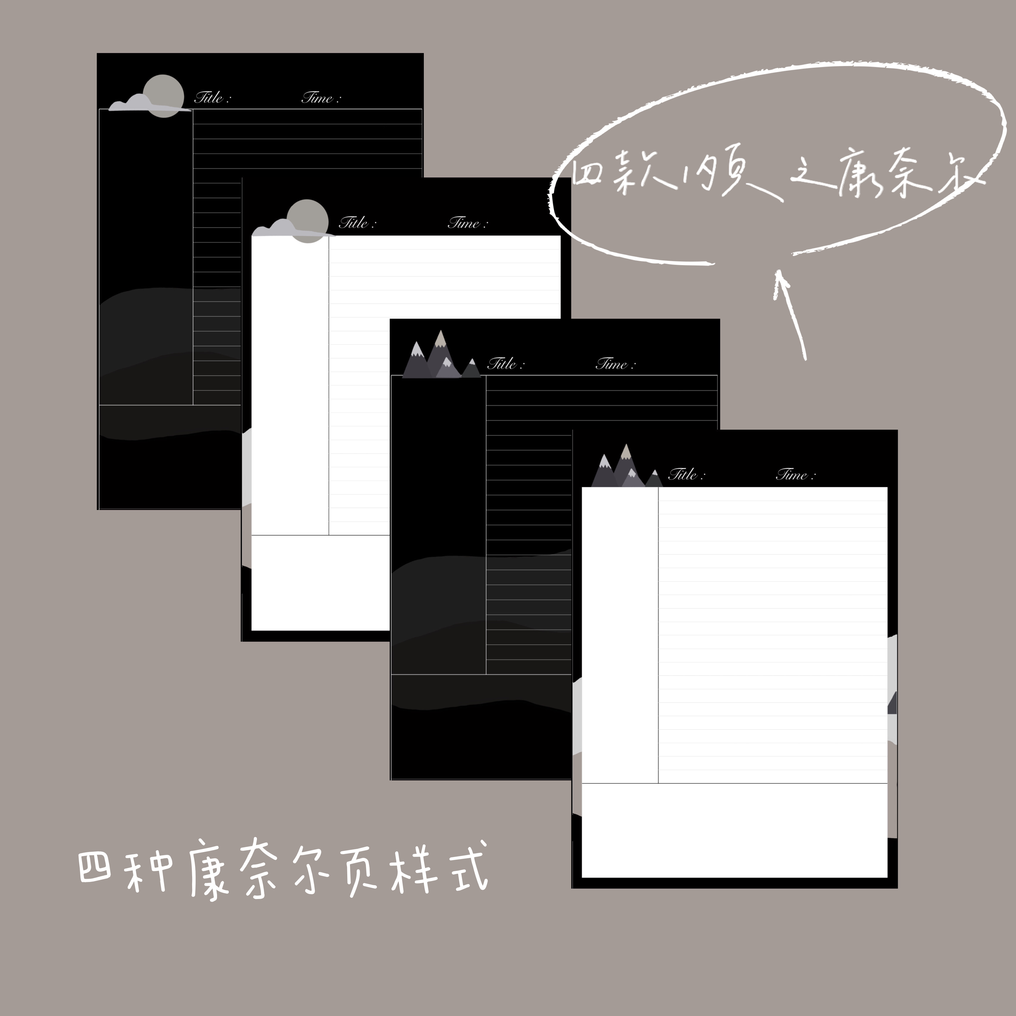 1.内页有四种格式:空白、方格、横线和康奈尔,分隔页四种,总共4*4=16页。