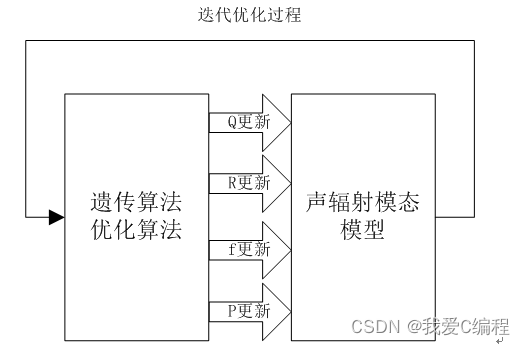这四个参数共同决定了最后的声功率大小,因此,在进行优化的时候,通过对这四个变量进行遗传算法的优化,那么系统总体的构架如下所示:
