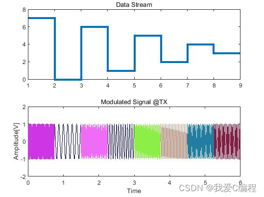 MFSK系统是2FSK(二频键控)系统的推广,该系统有M个不同的载波频率可供选择,每一个载波频率对应一个M进制码元信息,即用多个频率不同的正弦波分别代表不同的数字信号,在某一码元时间内只发送其中一个频率。
