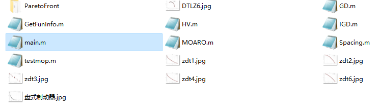 文件夹内包含46个多目标测试函数(ZDT1、ZDT2、ZDT3、ZDT4、ZDT6、DTLZ1-DTLZ7、WFG1-WFG10、UF1-UF10、CF1-CF10、Kursawe、Poloni、Viennet2、Viennet3)以及1个工程应用(盘式制动器设计),并提供IGD、GD、HV、SP四种指标评价。代码均能运行,点击main.m即可。