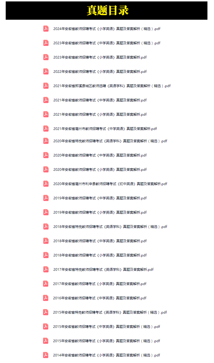 2014年-2024年安徽省教师招聘考试英语学科专业知识笔试真题24套