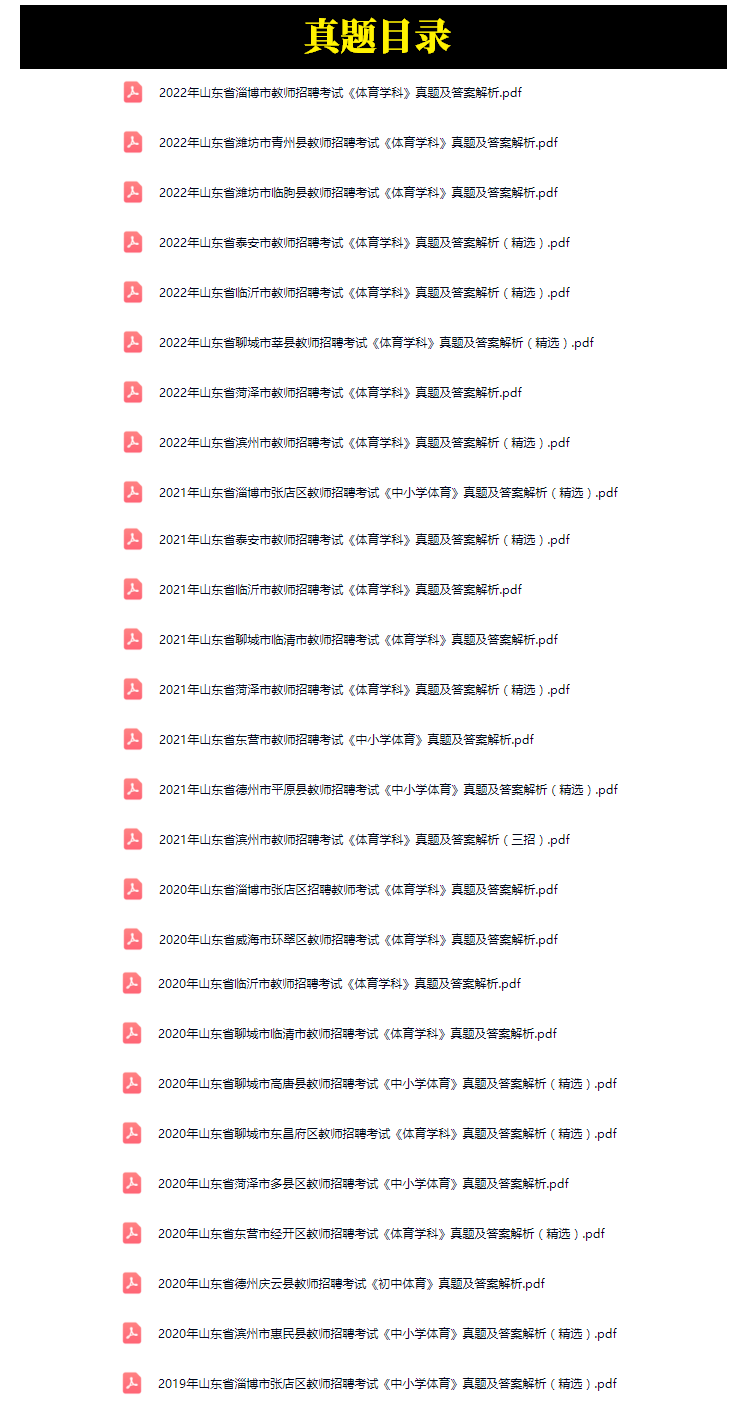 2019年-2022年山东省教师招聘考试体育学科专业知识笔试真题49套
