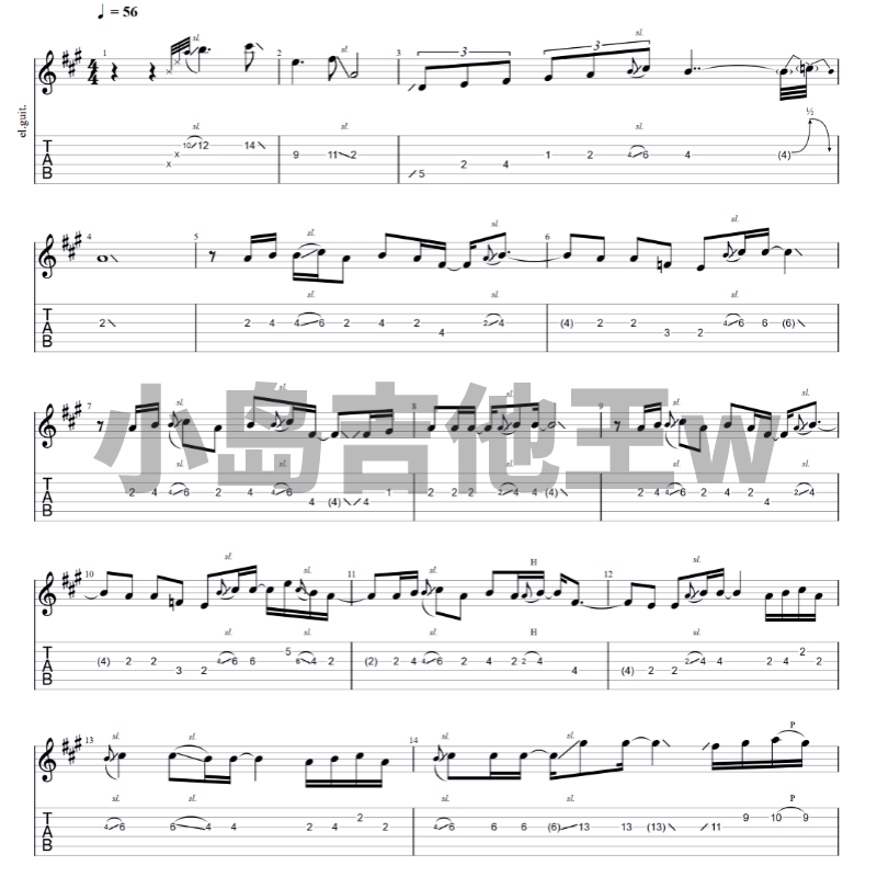 涉及技巧:击、勾、滑弦、推弦、闷音