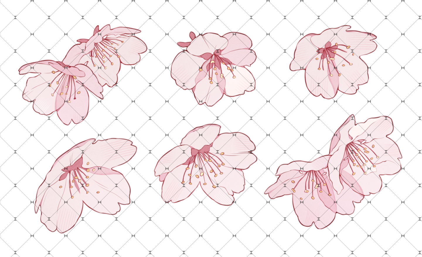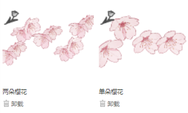 樱花笔刷,内含2款笔刷,为【独朵樱花4朵款】+【两朵樱花2组款】。请根据需要组合使用。