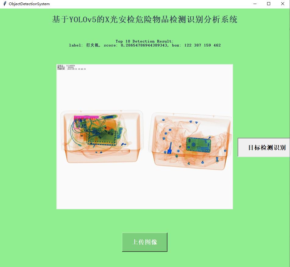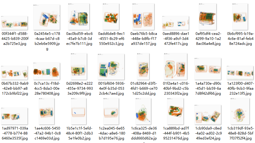 X光过安检的场景我相信所有人都不会陌生, 每年总会有那么几次坐火车的时候,每次进站都要各种仪器检查扫描,然后入站的时候可以看到行李通过传送带的旁边有几个工作人员盯着屏幕在看X光探照出来的行李包裹里面是否有违禁品,这种工作还是很枯燥的,但是却需要高度集中精力才行,其实这种场景是比较合适让AI来参与进来减少人工成本的。这里就是一个简单的尝试,首先看下效果图: