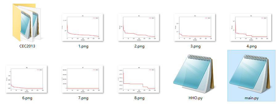 文件夹内包含HHO求解cec2013完整python代码,点击main.py即可运行。