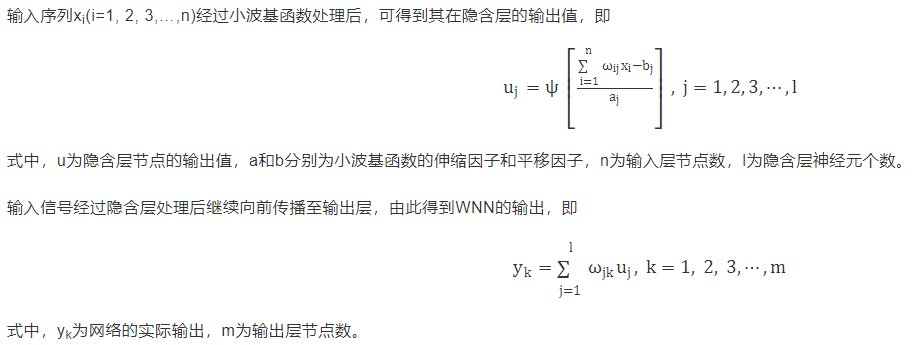 WNN是一种以小波基函数为隐含层节点、激励函数误差反向传播的神经网络,如下图所示: