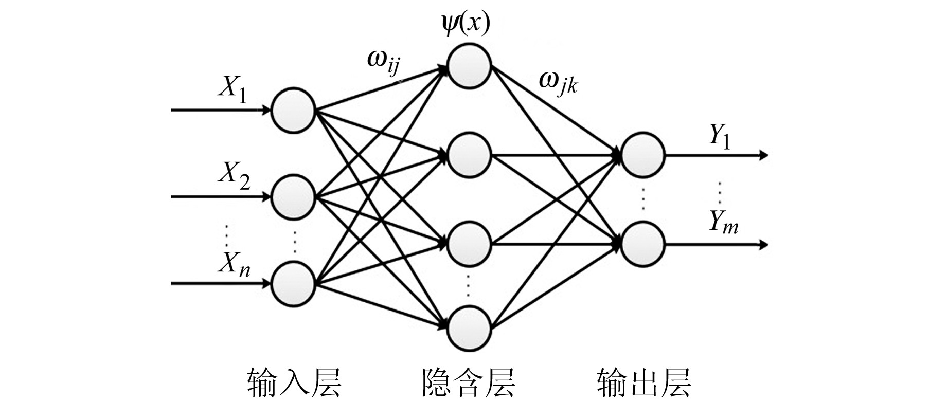 图中X为WNN的输入样本,Y为WNN的预测输出,ωij和ωjk分别为连接输入层与隐含层、隐含层与输出层的权值,ψ(x)为小波基函数。本文所采用的小波基函数为Morlet小波函数,其表达式为: