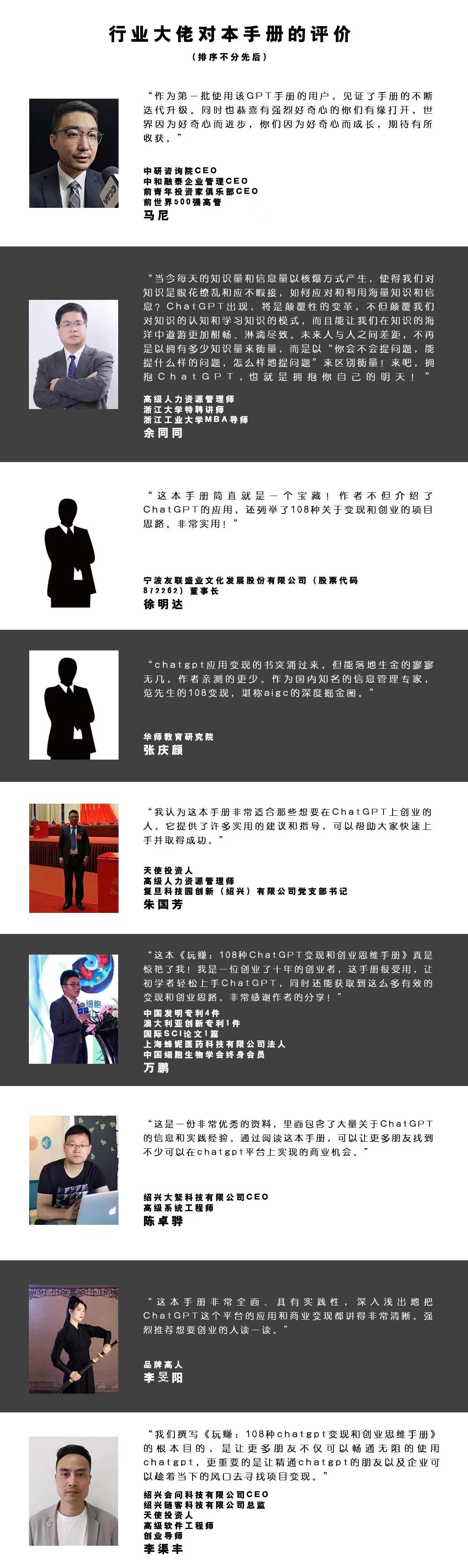 无论您现在是做什么行业的,您都应该要趁早入手这本手册,因为“生成式人工智能”时代已经来了!会用chatgpt的人更容易成为“社会精英”,因为: