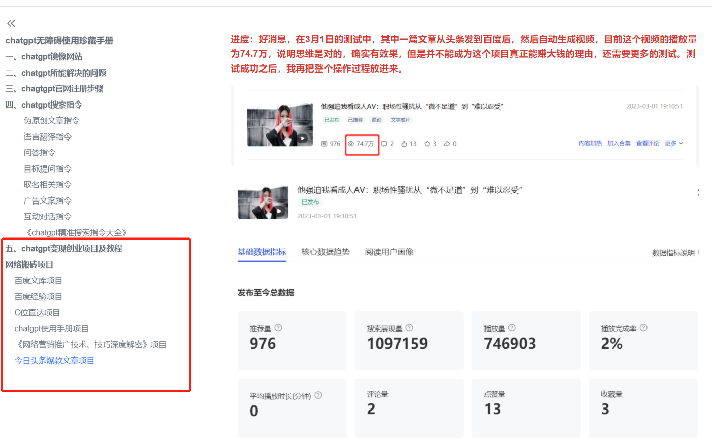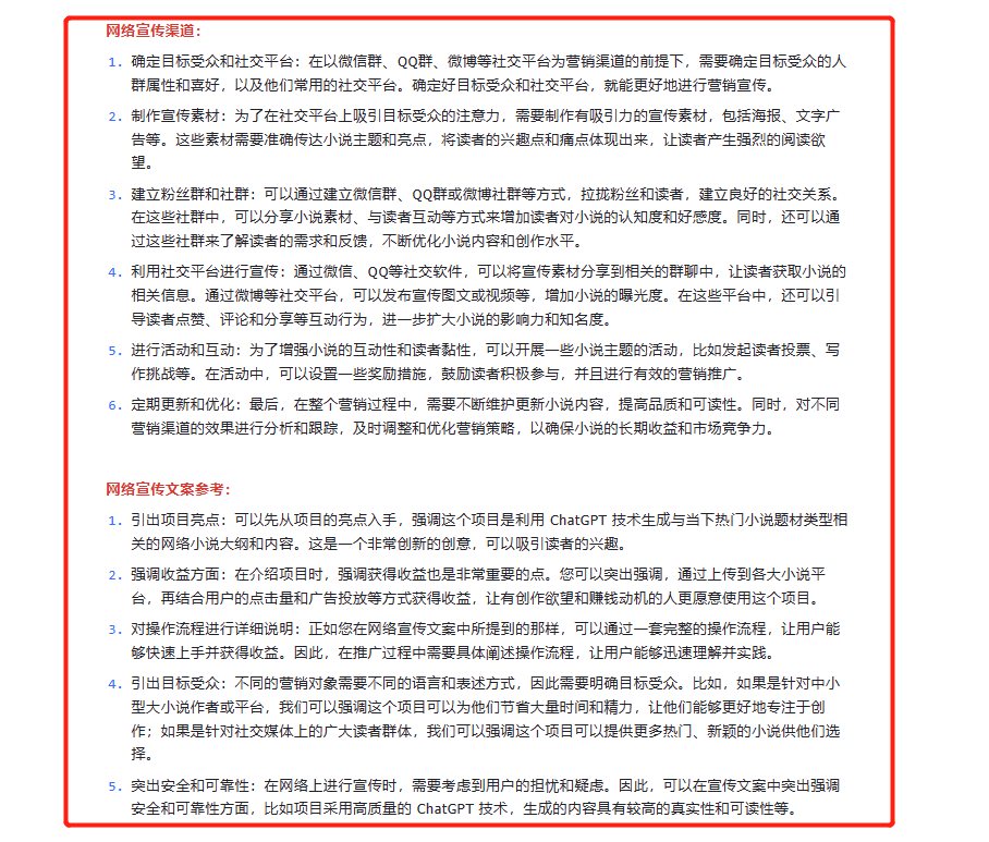 这里面展示了很多利用我自己利用chatgpt进行变现的教程都是实操后整体操作步骤完整展示的,免费查看、免费使用,更有28个变现和创业项目(包括项目名称、项目概述、适合人群、项目变现方式、操作步骤提示、网络宣传渠道、网络宣传文案参考、扩展思路、注意事项、chatgpt指令参考(截图)等十个方面多进行阐述。)不仅给你利用chatgpt的变现项目思维,更能给你变现、推广的灵感!