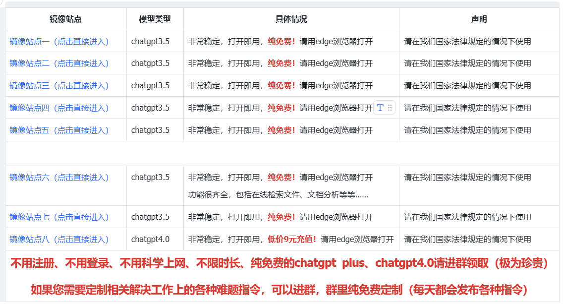 承诺:不用注册账号、不用登录、不用科学上网、不用花钱(纯免费),不限制次数,里面的这些镜像站随意选择一个你喜欢的打开即用。