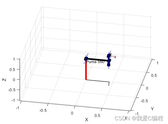 PUMA560 机械臂是一种示教机器人。有六个自由度,包括6个旋转关節,模仿人的腰、肩、肘和手腕运动,能以规定的姿态到达工作范围内的任何一个点。包括:臂体、控制器和示教器三个部分。PUMA560 机器手是工业机器人(或称机器人操作臂)。从外形来看,它和人的手臂相似,是由一系列刚性连杆通过一系列柔性关节交替连接而成的开式链。PUMA560的基座、连杆一、连杆二、连杆三、连杆四到六分别类似于的盆骨、腰椎、大臂、小臂、腕手。操作臂的前端装有末端执行器或相应的工具,也常称为手或手爪。手臂的动作幅度一般较大,通常实现宏操作。