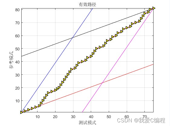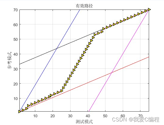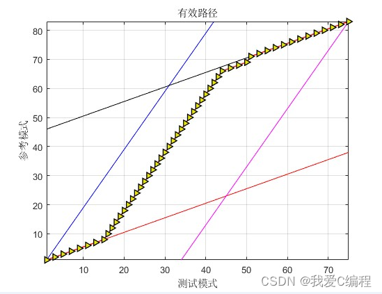 由于即使同一个人不同时间发出同一个声音,也不可能具有相同的长度,因此就需要用到动态时间归正(DTW)算法。把时间归正和距离测度计算结合起来的一种非线性归正技术。DTW 本质上是一个简单的动态规划算法,是用来计算两个维数不同的向量之间的相似度的问题,即计算向量 M1 和 M2 的最短距离。是一种非常常用的语音匹配算法。