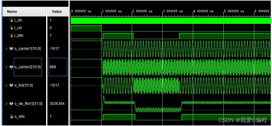 在二进制频移键控中,幅度恒定不变的载波信号的频率随着输入码流的变化而切换(称为高音和低音,代表二进制的1 和0)。产生FSK 信号最简单的方法是根据输入的数据比特是0还是1,在两个独立的振荡器中切换。采用这种方法产生的波形在切换的时刻相位是不连续的,因此这种FSK 信号称为不连续FSK 信号。由于相位的不连续会造频谱扩展,这种FSK 的调制方式在传统的通信设备中采用较多。随着数字处理技术的不断发展,越来越多地采用连继相位FSK调制技术。目前较常用产生FSK 信号的方法是,首先产生FSK 基带信号,利用基带信号对单一载波振荡器进行频率调制。相位连续的FSK信号的功率谱密度函数最终按照频率偏移的负四次幂衰落。如果相位不连续,功率谱密度函数按照频率偏移的负二次幂衰落。