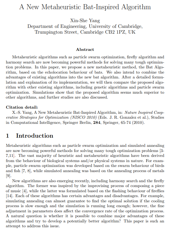 参考文献: [1] Xin-She Y . A new metaheuristic bat-inspired algorithm, nature inspired cooperative strategies for optimization (NISCO 2010). 2010.