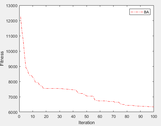 [fMin5,bestX5,ConvergenceCurve5] = BA(pop, maxgen,Xmin,Xmax,dim,fobj);