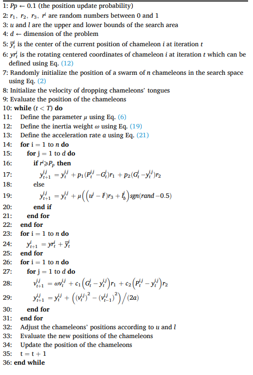 参考文献:[1] Braik M S . Chameleon Swarm Algorithm: A Bio-inspired Optimizer for Solving Engineering Design Problems[J]. Expert Systems with Applications, 2021, 174(1):114685.