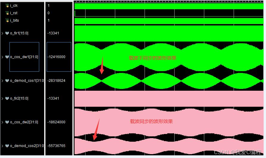对比没载波同步和有载波同步的仿真效果,我们可以看到,当不存在载波同步时,数据的包络会有一个缓慢的类正弦变换,这是由于存在频偏导致的。而当加入载波同步之后,数据的包络会存在少量起伏,但数据反转的情况已经没有了, 说明频偏得到了补偿。